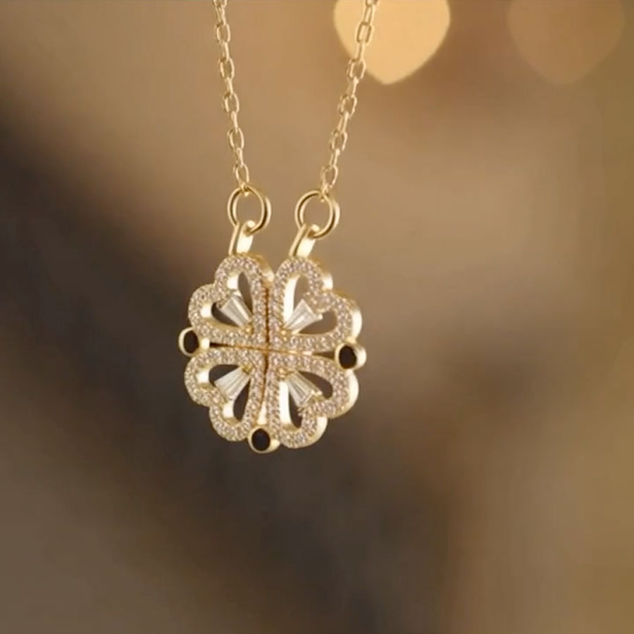 She stayed up until morning, testing shapes, playing with symmetry, folding paper until it mimicked the curves of real metal. The design was delicate, magnetic, and symbolic. When apart, the pieces looked like hearts—simple and elegant. But when they joined together, they transformed into a perfect four-leaf clover.